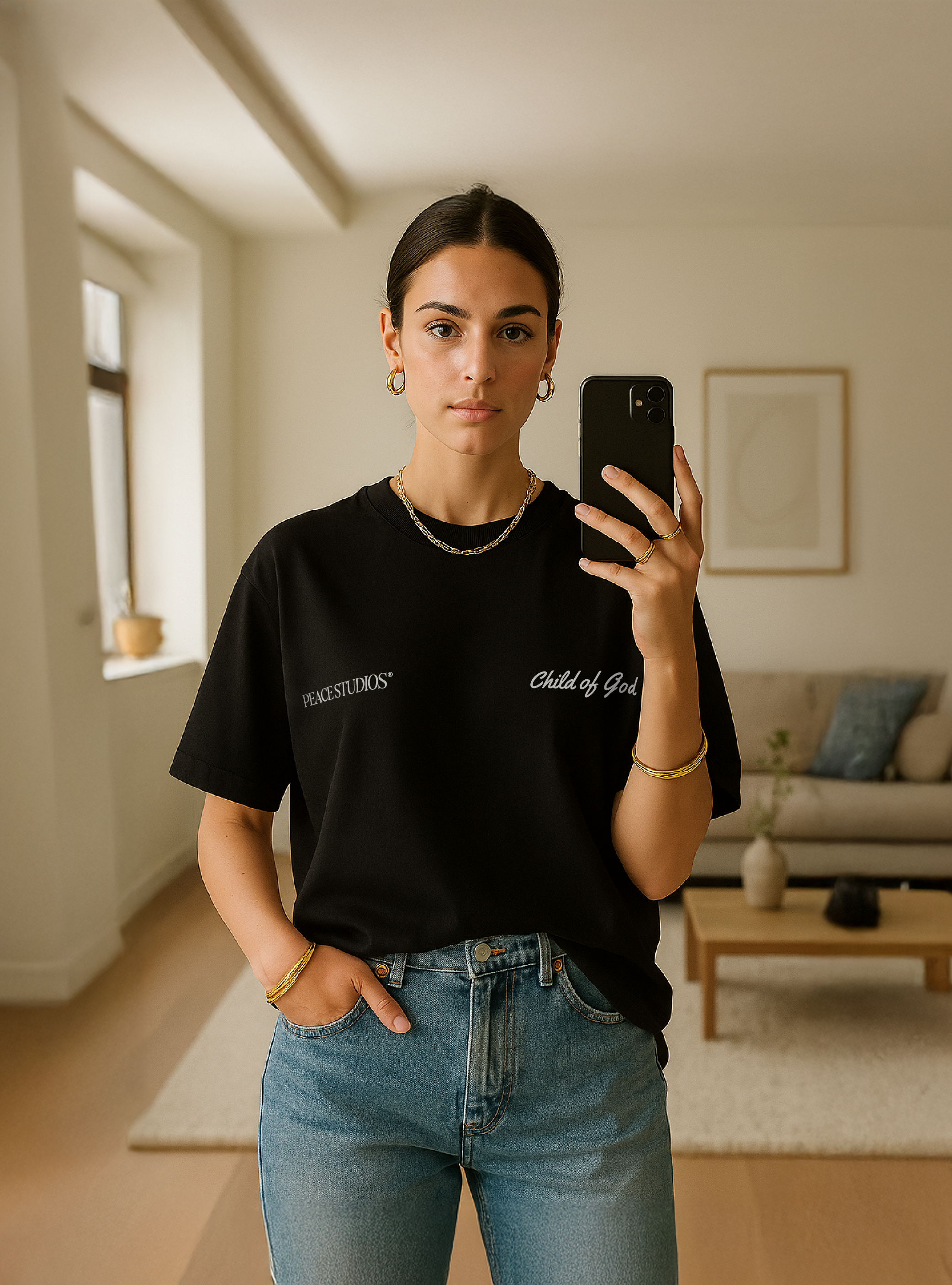 Child of God Black Heavyweight Loose Fit Tee | Peace® PEACE STORE